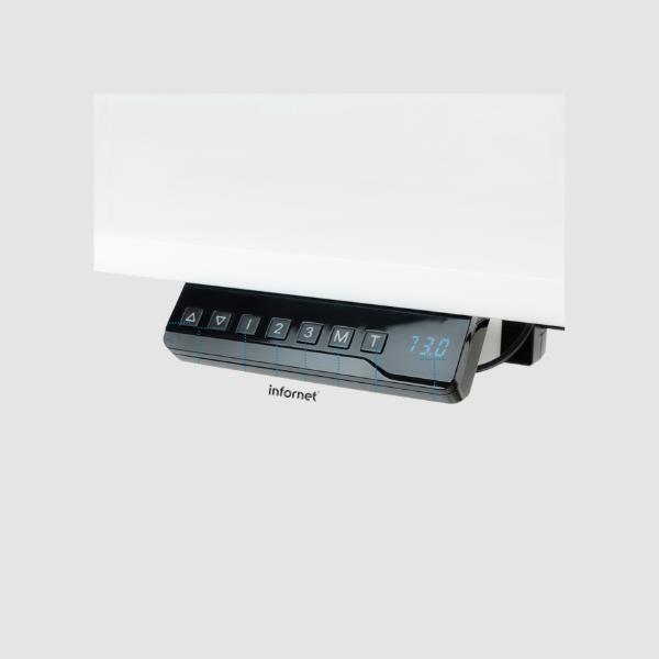 Dimensiones: 1400x600x730-1180 mm Rango de ajuste de altura: 730-1180 mm Tablero de MDF de 18 mm Dimensiones del tablero: 1400x600 mm Capacidad de peso: 50 kg Motor DC 100-240V Longitud del cable: 3 m Velocidad de regulación: 38 mm por segundo Panel de control digital para regulación de altura Bases de las patas regulables Materiales: Estructura de acero y tablero de MDF Color: Blanco Peso neto: 28,4 kg. Peso bruto: 34,10 kg Medidas del embalaje: 1515x695x185 mm Contenido del Paquete