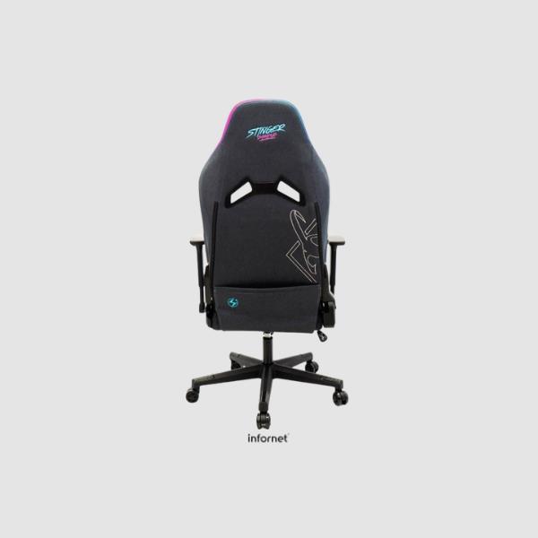 La Woxter GM26-121 es una silla gaming ergonómica de la serie Stinger Station Elite, con acabado bicolor azul y rosa, iluminación LED RGB configurable mediante aplicación móvil, diseño tipo “racing” adaptado tanto para sesiones de juego como de trabajo prolongadas, tapizado en polipiel con detalles efecto carbono y reposabrazos ajustables en altura e inclinación
